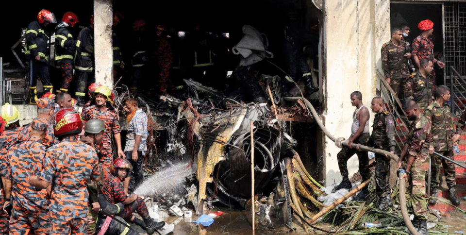 Dhaka, July 21 – At least 19 people were killed and more than 100 injured after a Bangladesh Air Force training jet crashed into Milestone School and College in Uttara, Dhaka on Monday afternoon, sparking a massive fire and chaos across the area, The Daily Star reported.
