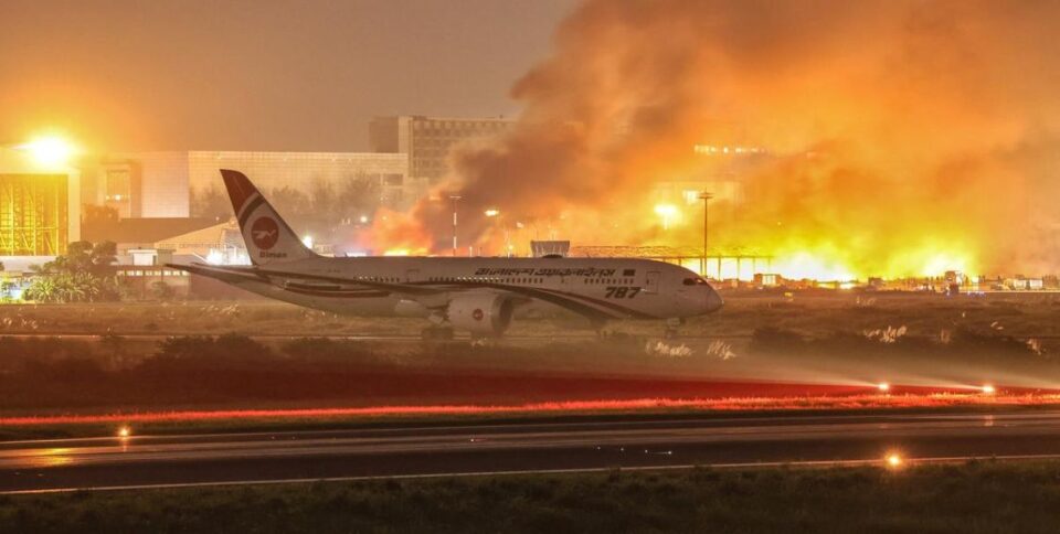 Local media reports said chemicals stored in the cargo zone posed a major challenge for firefighters trying to contain the blaze. Eyewitnesses described the fire as “massive,” with thick plumes of smoke blanketing large parts of the airport and nearby areas.