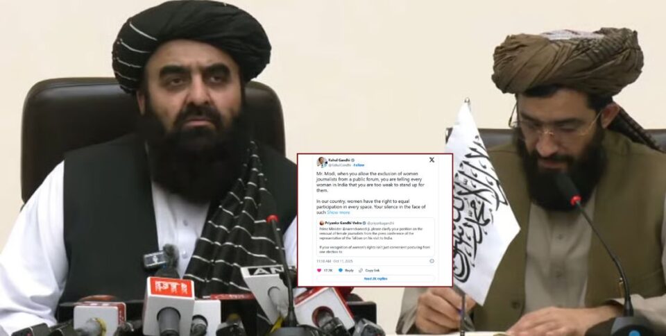 Nayanima Basu questioned how such an event could be permitted in the Indian capital. “Right under the Indian government’s nose, the Afghan Foreign Minister holds a press conference, intentionally excluding any female journalists. How can this be allowed? Who approved such an outrageous disregard for representation?” she posted.